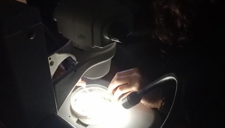 Através de uma lupa binocular e comparando as amostras com coleções de referência ou com atlas de especialidade, identificam-se os frutos e as sementes carbonizadas.