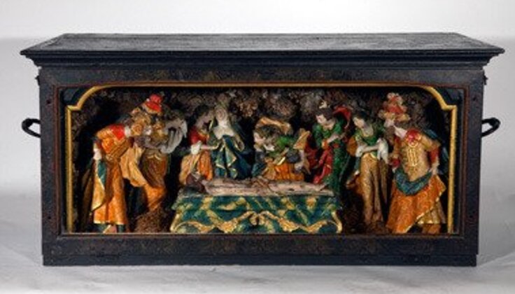 A figura central e principal desta representação é o corpo de Cristo morto deposto sobre uma plataforma de pedra. À sua volta convergem oito personagens. O drama aqui retratado, envolto numa atmosfera de grande sofrimento e tensão é visível nas expressões faciais de dor e luto perante o corpo inerte de Cristo.