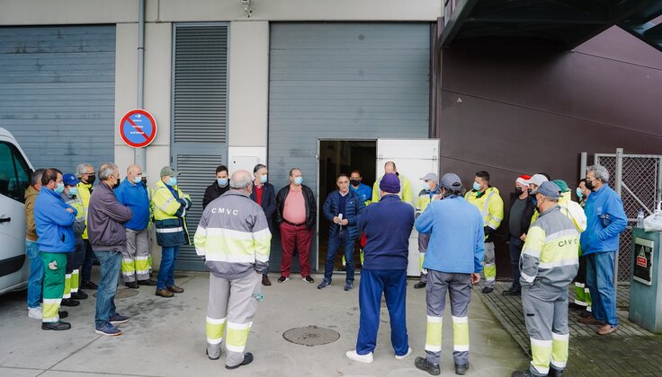 A poucas horas da Noite de Natal, os colaboradores municipais do Serviço de Higiene e Limpeza iniciam mais um turno de recolha de resíduos. Antes de partirem para as rotas de recolha, receberam a visita do Presidente da Câmara, Vítor Costa, e dos vereadores Mário Reis e Paulo Vasques que agradeceram o empenho e o esforço neste dia especial.