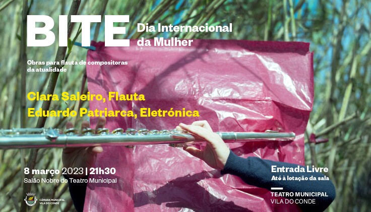 Nas comemorações do Dia Internacional da Mulher, 8 de março, às 21h30, o Salão Nobre do Teatro Municipal de Vila do Conde acolhe o Recital intitulado “Bite”, pela flautista vilacondense Clara Saleiro acompanhada por Eduardo Patriarca, Eletrónica.