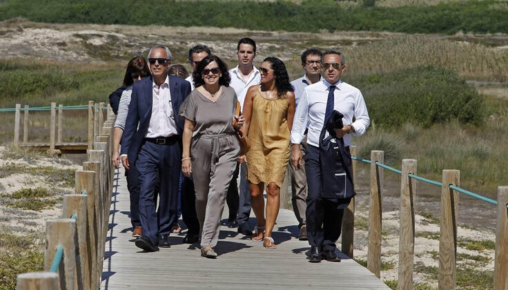 A Presidente da Câmara Municipal, Dr.ª Elisa Ferraz, acompanhou, hoje, a visita do Secretário de Estado do Ambiente, Dr. Paulo Lemos, a Vila do Conde para avaliar as obras de requalificação e valorização do litoral sul do concelho. A visita iniciou-se na Praia de Árvore, tendo a comitiva percorrido os passadiços, recentemente disponibilizados à comunidade, ao longo da área de paisagem protegida do litoral sul até Mindelo.