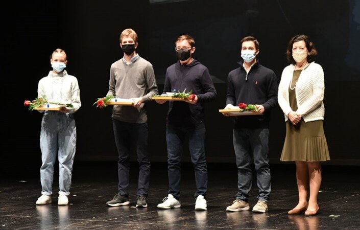 O Teatro Municipal acolheu, no passado sábado, a sessão na qual a Presidente da Câmara, Dr.ª Elisa Ferraz, procedeu à entrega do Prémio Escolar Municipal aos melhores alunos dos estabelecimentos de ensino do nosso Concelho no ano letivo 2018/2019. Esta Homenagem é habitualmente realizada no dia 26 de março, Dia de Vila do Conde. Este ano, devido à Pandemia, foi adiada para está data.