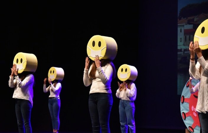 A finalizar a sessão, teve lugar um momento cultural, muito adequado à situação pandémica que vivemos, dinamizado por alunas da Escola Profissional de Vila do Conde. A Câmara Municipal apresenta o seu agradecimento à Direção da Escola Profissional, aos docentes que coordenaram a atividade e às alunas que a apresentaram.
