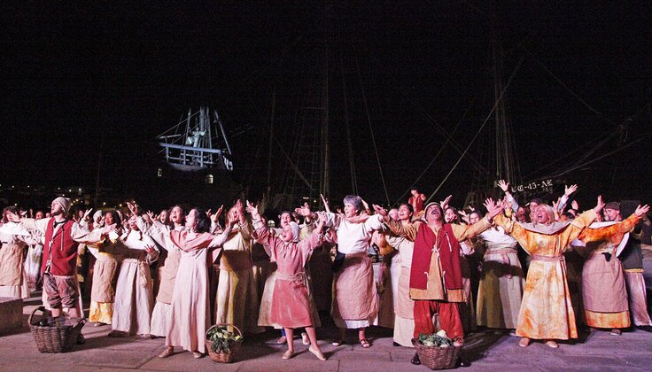 Numa coprodução entre a Câmara Municipal e a Companhia de Teatro Lafontana – Formas Animadas, com encenação de Amauri Alves, texto de José Coutinhas e música de Flávio Medeiros, Vila do Conde apresentou o maior teatro musical de rua do país em que duas centenas e meia de voluntários deram vida a um projeto que sem eles não seria possível concretizar. Entre artistas profissionais das áreas de escultura de cenografias, coreografia, música e representação, estavam os atores que, na sua grande maioria, eram “os nossos cidadãos, os nossos vizinhos e os nossos amigos”, como referia o produtor Marcelo Lafontana no final de cada dia de espetáculo.