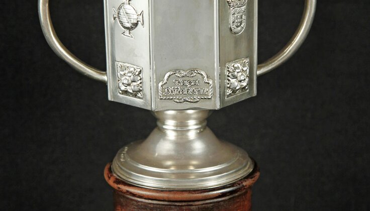 Taça oferecida pelo Rei D. Manuel II ao Fluvial Vilacondense em exposição nos Paços do Concelho