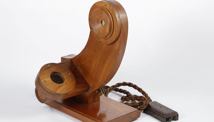 Concebido pelo português Cristiano Augusto Bramão, em 1879, este telefone de mesa é o resultado da continuação dos trabalhos de pesquisa iniciados em 1878 por este 1º Oficial da Direção Geral dos Telégrafos. Com chamada feita através de manipulador Morse, o telefone de Bramão é considerado uma referência a nível internacional, por ser o primeiro aparelho do mundo que apresenta, numa única peça, o auscultador e o microfone. Esta solução concebida por este português só viria a ser adotada pela indústria de telefones muito mais tarde, no final do século XIX.