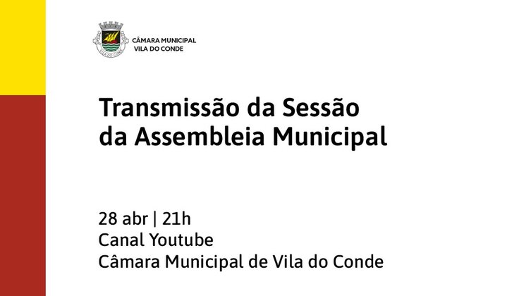 A Sessão Ordinária da Assembleia Municipal agendada para esta quinta-feira, dia 28 de abril, às 21h00, será transmitida em direto através do canal de youtube da Câmara Municipal.