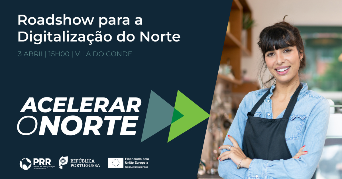 No próximo dia 3 de abril, o Teatro Municipal de Vila do Conde recebe uma sessão do Roadshow "Acelerar o Norte", uma iniciativa de promoção da transição digital junto dos empresários do setor do comércio, dos serviços pessoais e da restauração, que visa dar a conhecer os apoios à transição digital no âmbito desta iniciativa.