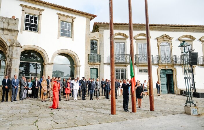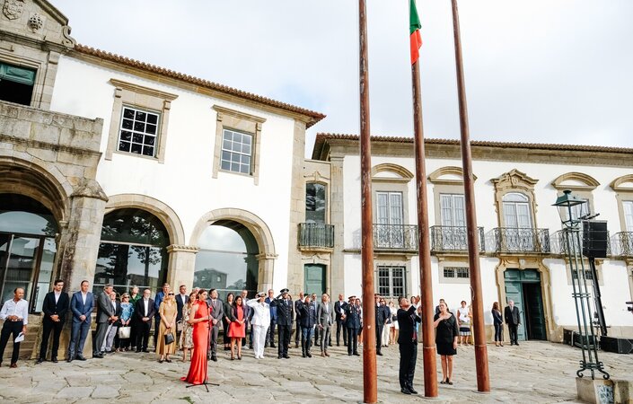 A cerimónia oficial teve início na Praça Vasco da Gama com a revista ao Corpo Ativo dos Bombeiros Voluntários de Vila do Conde pelo Presidente da Câmara Municipal, Vítor Costa, seguindo-se o Hastear da Bandeira ao som do Hino Nacional, interpretado pela soprano Liliana Nogueira.