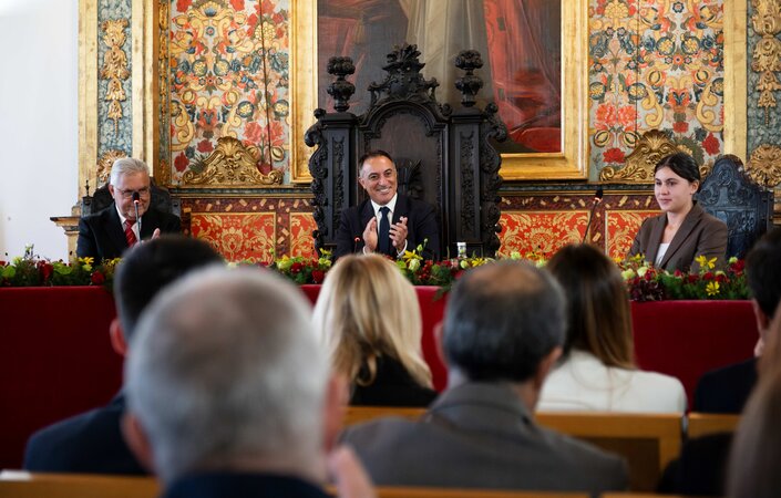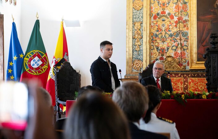 Também no Salão Nobre intervieram o Presidente da Assembleia Municipal, Amândio Couteiro, e os alunos Leonor Lopes, do Agrupamento de Escolas D. Afonso Sanches, e Ricardo Lima, da Escola Profissional de Vila do Conde.