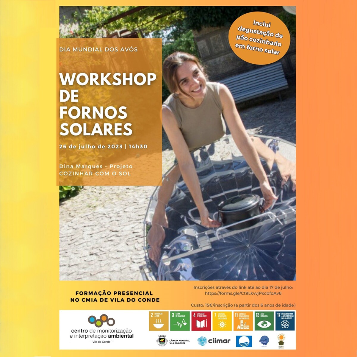 No dia 26 de julho, às 14h30, junte-se ao Centro de Monitorização e Interpretação Ambiental (CMIA) de Vila do Conde para um dia especial de convívio entre avós e netos. Em parceria com o projeto "Cozinhar com o Sol", está a ser preparado um workshop de Fornos Solares, onde os participantes terão oportunidade de aprender práticas sustentáveis de autossuficiência, utilizando a energia do Sol, para cozinhar alimentos.