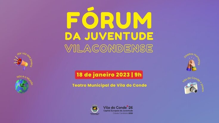 No âmbito da candidatura de Vila do Conde a Capital Europeia da Juventude 2026 realiza-se no próximo dia 18 de janeiro, no Teatro Municipal, o Fórum da Juventude com o objetivo de receber ...2023/01/16 -