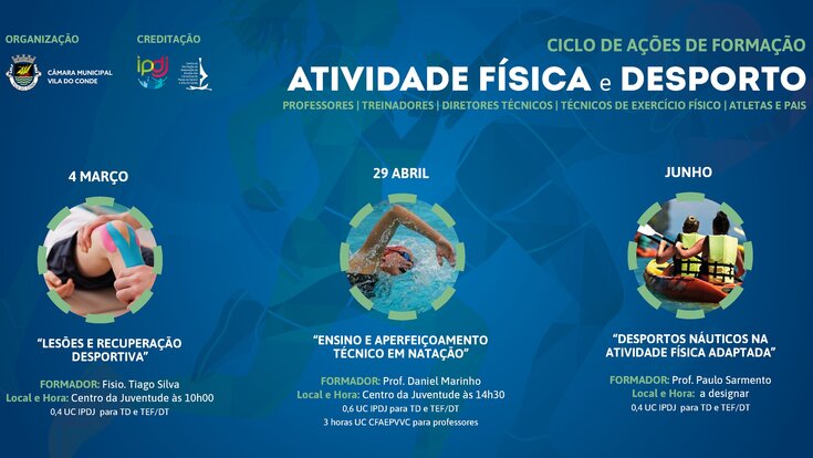 A Câmara Municipal de Vila do Conde vai promover um Ciclo de Ações de Formação de Atividade Física e Desporto sobre traumatologia e recuperação desportiva, natação e desporto adaptado, destinado a ...2023/01/18 -
