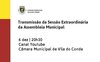 Transmissão da Sessão Extraordinária da Assembleia Municipal